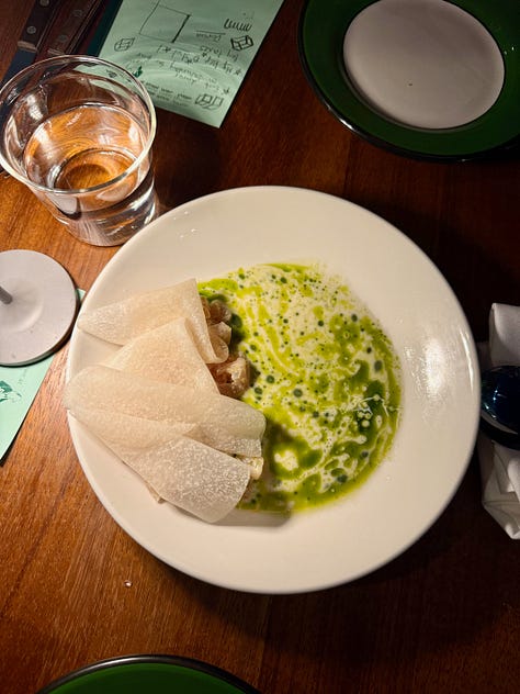 My favorite versions of this show up at places I’ve already written about plenty. The most expensive dish at Wilde’s is a $68 meat pie followed by a couple $38 mains. The clientele here might have the money for a $200 turbot, but it’s not what gets them excited to leave their bungalow. The cooking at Wilde’s rivals that of any New York restaurant reaching for the same flavors, with twice the comfort. At Morihiro you can stroll in for some of the time zone’s very best sushi, à la carte, paired with simple, high quality cocktails. A four-top at Ètra piled with pasta and vegetables is often me at my happiest. Even Baby Bistro marries peak dish creativity with perhaps the city’s most welcoming, homey mix of service and dining room. The roaming Bruce pop-up takes what these chefs did well at Horses and makes it lighter, brighter and more fun. The now controversial Substack pastina got described at my table as "the ideal version of something I'd make when stoned in my kitchen." Exactly.