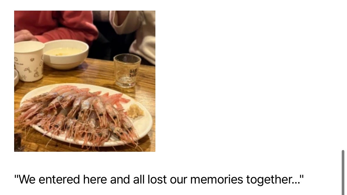 In the morning, these shrimp travel from the sea between Korea and Japan to an unassuming shop on a Seoul side street. They’re sweet, yes, but they’re also pristine. You taste the precious few hours from departure to arrival.