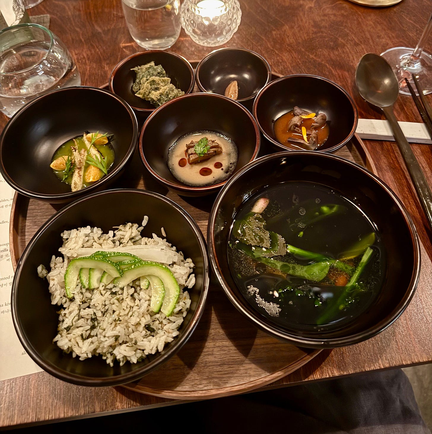 I don’t find food to be a spiritual experience. Inspiring, invigorating, communal, emotional, yes, but I draw the line somewhere. I left a March birthday dinner at Baroo among the happiest I’d been all year. Plastered, I ignored the card they slipped me on the way out. The next morning, I finally opened it. The header read, “Yang Earth Yin Water” and featured a translation of a Korean poem: