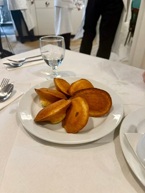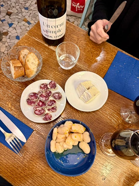 I stopped into La Buvette twice in five days. On each visit we fired off a round of great cheese, charcuterie, bread, their famous beans. Nothing you can’t do at home. But a welcome reminder of a beautiful way to eat: Out in the world with friends, the highest quality ingredients unadorned or fussed over, with wine picked by an expert who knows way more than you do.Fresh madeleines | St. John | London