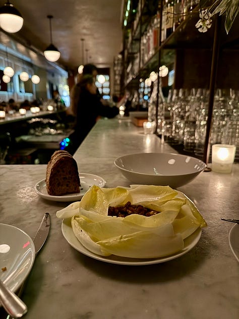 I’d love to start more days in 2026 with this egg sandwich from Amanda’s pop up at Strange Delight and end more evenings with the freshly baked madeleines from St. John, both of which beam with a crowd-pleasing elegance and high level of care.The entire entrée course | Bistrot de Tournelles | Paris