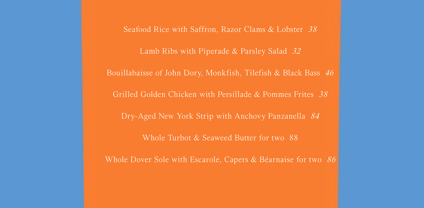 Friends have started to look at me funny as I lean more entree-heavy in my dinner orders, but I’m enjoying this shift. It makes dining out feel special again. And it’s a good vehicle for chef creativity that isn’t rooted in tweezers or TikTok-baiting gimmicks. I’m headed to Cervo’s soon, where I’ll house the fried skate wing and the lamb burger. And as I peak at the menu at Le Veau d'Or ahead of my first visit before leaving town, my eyes keep gravitating to the bottom of the page. Duck magret aux cerises. Homard macédoine. Onglet frites. Gigot of lamb coco beans. Yes, please. Bring it on.
